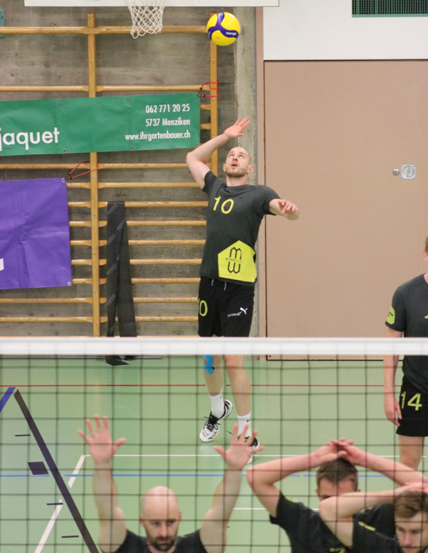 Die erste Mannschaft der Herren empfang die Gäste von Kanti Baden. Nach schon zwei verlorenen Spielen in der Saison lag der Druck hoch, gegen einen ebenwürdigen Gegner. Schon die zweite Woche in Folge musste das Team mit einer Minimalbesetzung an den Match antreten, ohne Auswechslungsmöglichkeiten und ohne Coach. Der Druck lag somit auf jedem Spieler bei 100 Prozent. Nach einem schlechten 1 Satz konnte der zweite gewonnen werden. Kanti Baden machte das Leben der Annahmespieler von Wyna mit guten Service schwer. Wenn Wyna ihr Spiel machen konnte, funktionierte es und es konnten Punkte und Fights gewonnen werden. Ein Spiel mit hohem Druck und ohne Auswechslung ist eine Achterbahnfahrt für die Gefühle und Motivation. Somit lag es nicht drin, die weiteren Sätze zu gewinnen. Die Spieler der 1 Liga Wyna hoffen auf eine vollständige Mannschaft bei den weiteren Spielen und werden sich in Zukunft mehr auf das eigene Spiel konzentrieren müssen, damit das schnelle, spielwitzige Spiel das alle Spieler zu spielen lieben wieder an den Tag kommt.
